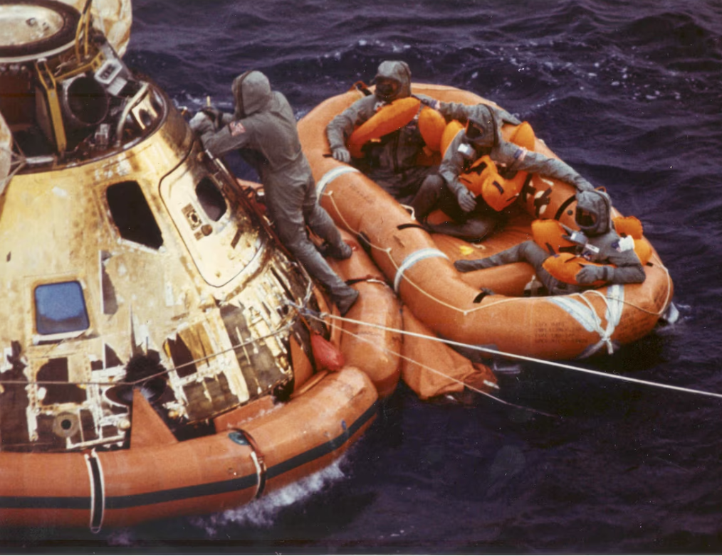 Take the controls of a U.S. Navy SH-3 Sea King helicopter and embark on a daring mission to rescue astronauts on an Apollo Command module.